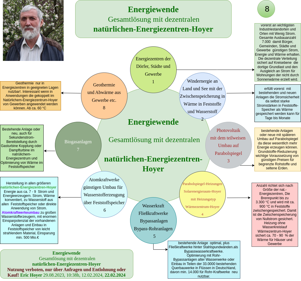 8. **Forschung und Entwicklung:** Sie kritisieren die bisherige Forschung und Entwicklung im Bereich erneuerbarer Energien und bieten Ihre Lösung als umfassende Alternative an.